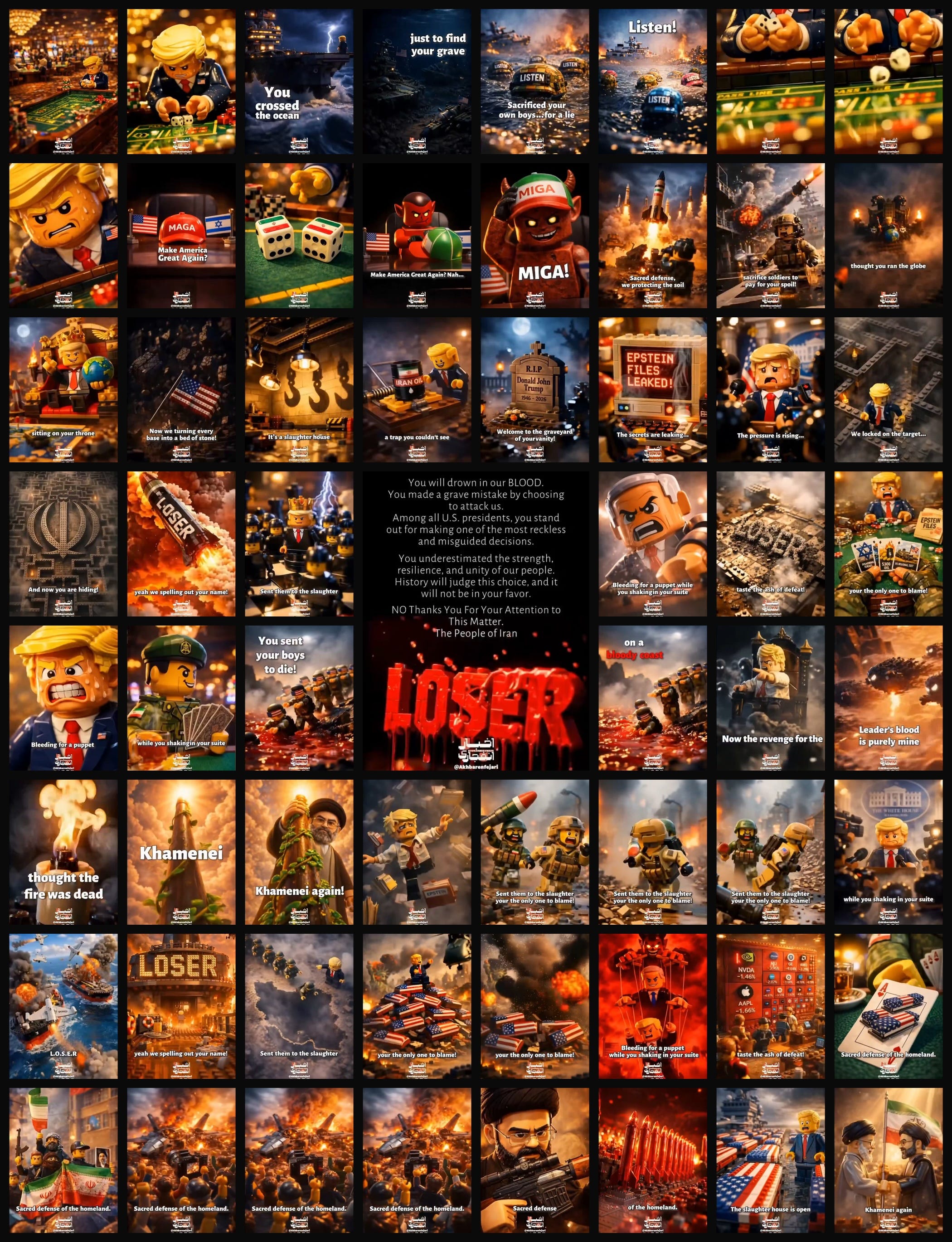 This dynamic rarely occurs through a single artifact in isolation. Instead, generative media outputs often exist within broader narrative ecosystems composed of slogans, symbolic imagery, deterrence messaging, and circulating visual memes that reinforce the same interpretive storyline across multiple formats. Posters, short clips, animations, and shareable images function as modular narrative nodes within a distributed system. Each artifact may appear individually simple, yet together they reinforce a coherent interpretive framework that audiences encounter repeatedly across platforms. In this sense, generative propaganda should be understood not merely as a standalone media product but as one component within a larger architecture of narrative reinforcement operating across digital networks.